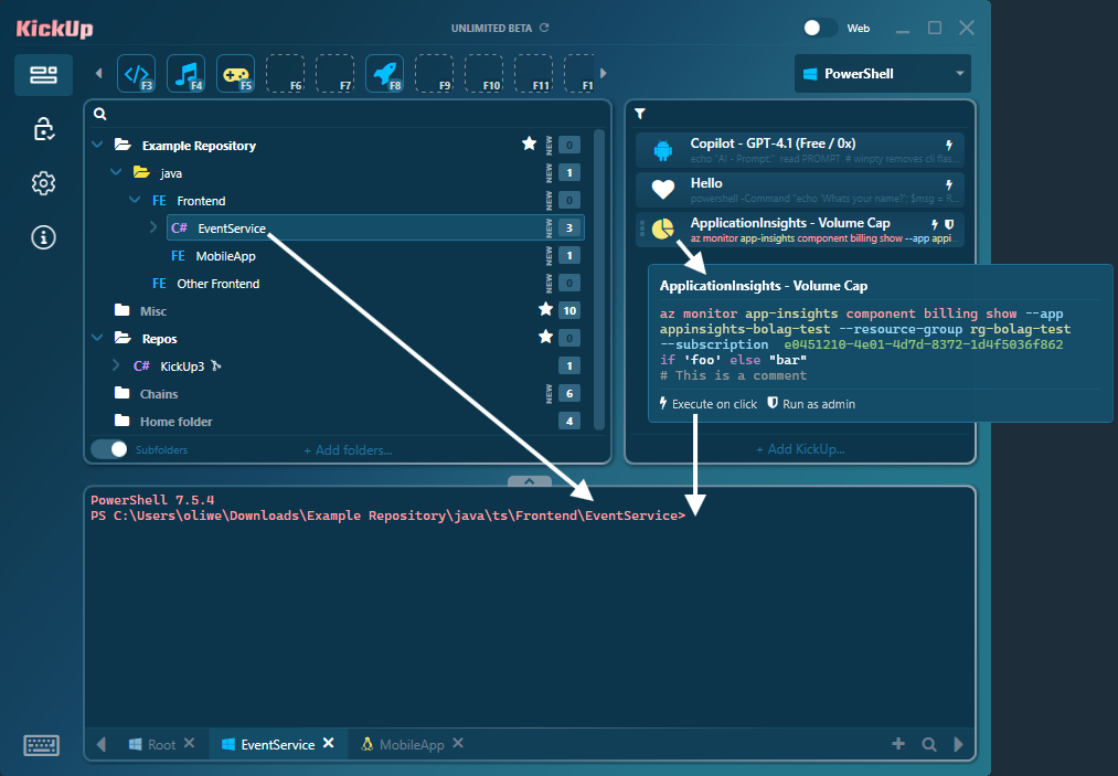KickUp – a powerful terminal manager with a visual interface (GUI) for quickly navigating folders and running commands.